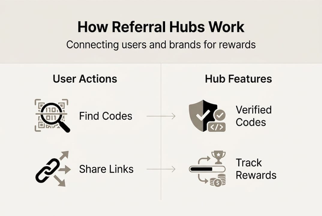 A referral hub is a platform that collects, verifies, and organizes referral codes from dozens or hundreds of brands in one place. Instead of digging through Reddit threads or expired coupon sites, you visit a single destination and browse active, confirmed codes sorted by category. Think of it as a curated marketplace where trust is built into the system.